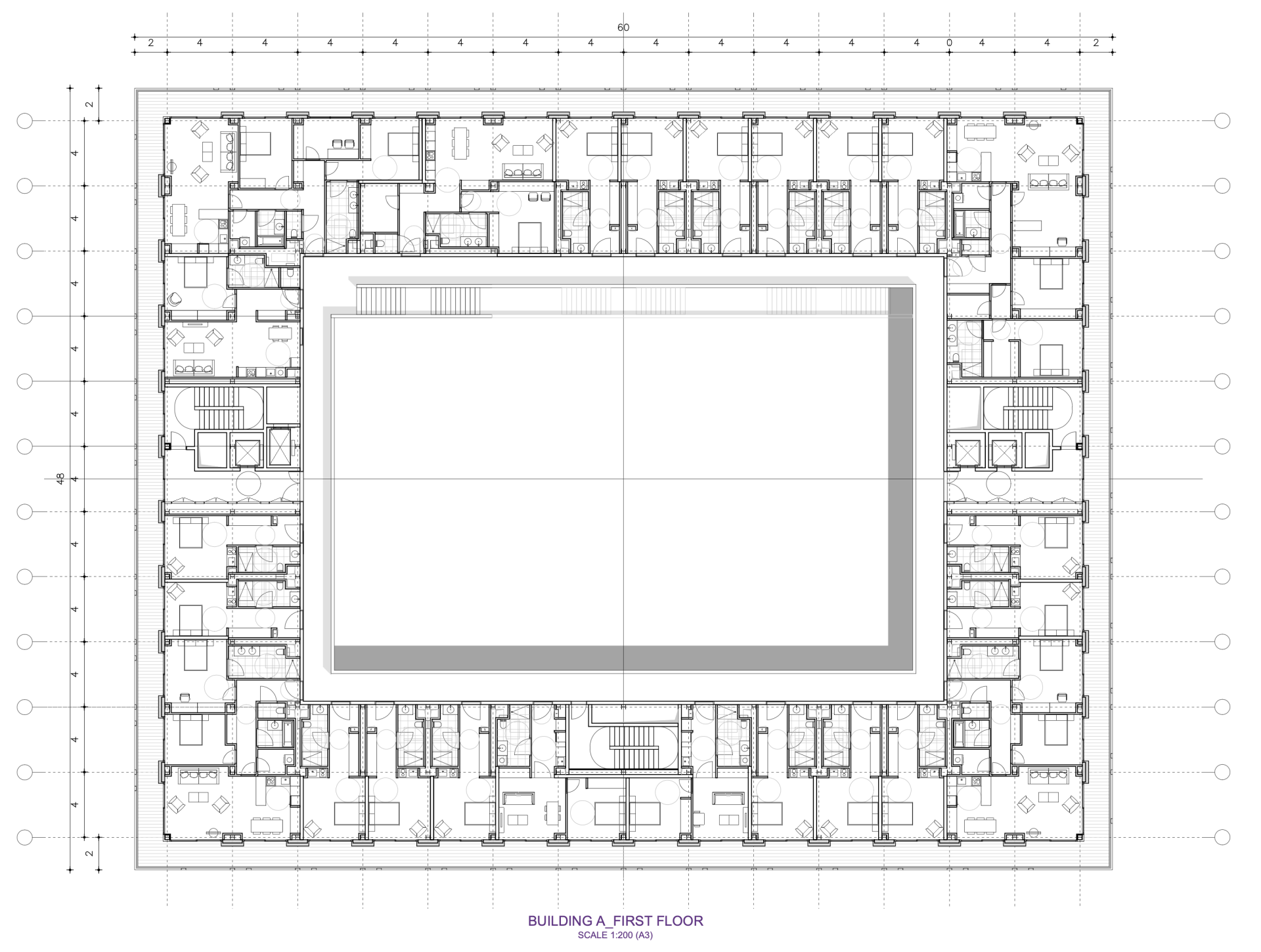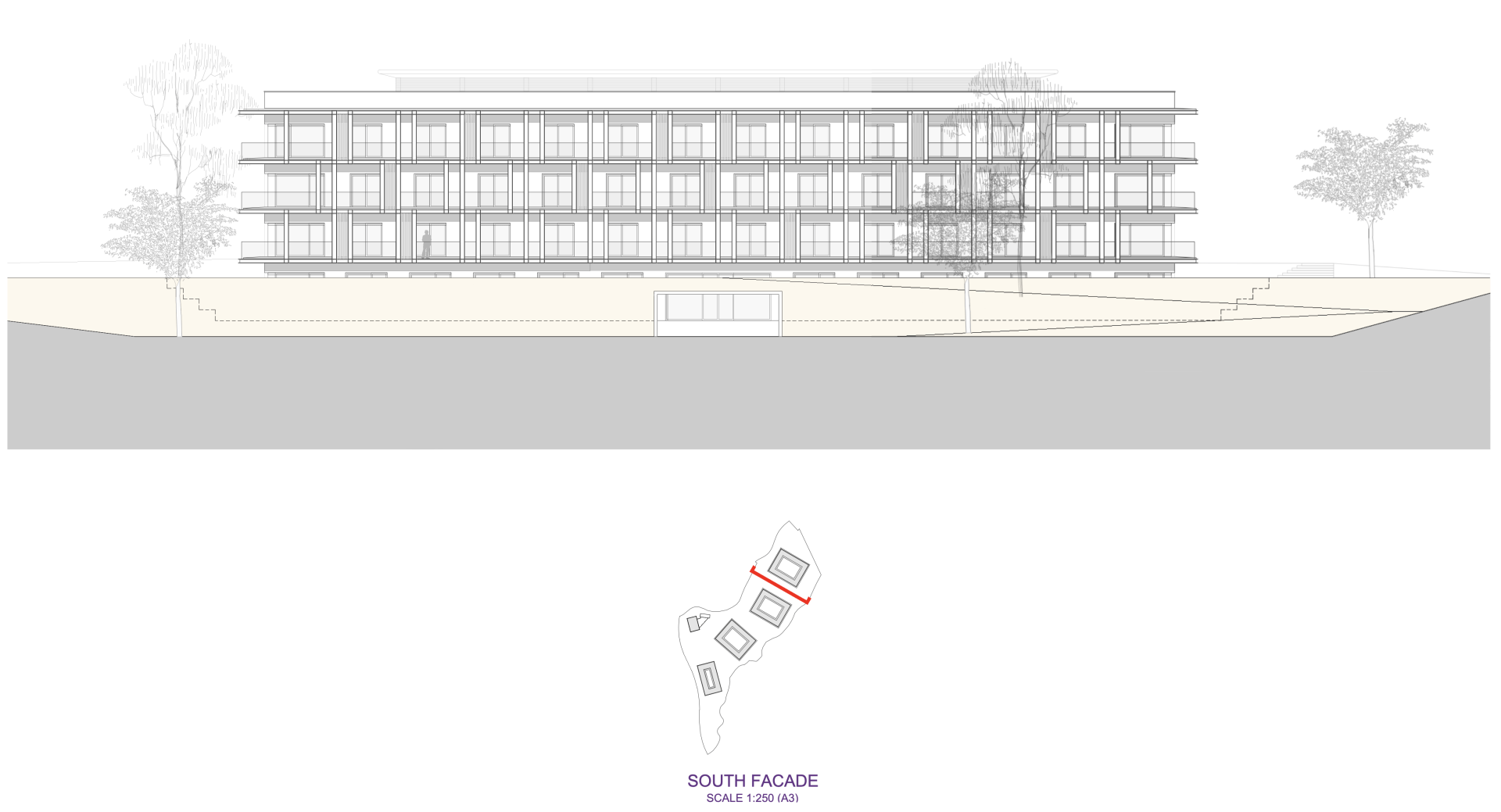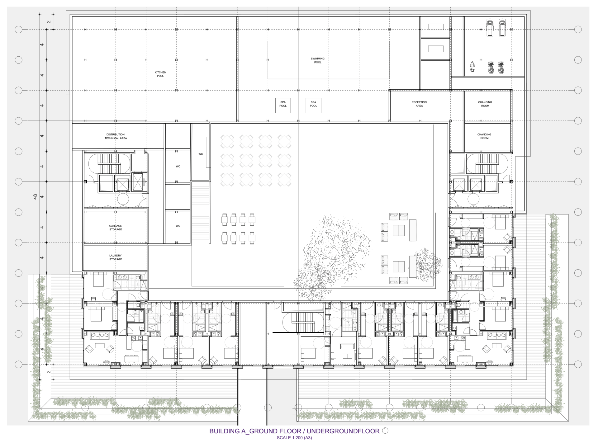 - 1 Nursing home (24/7 care and close surveillance, 78 apartments) based upon the same design as the senior home but with a higher degree of safety and daily available care.